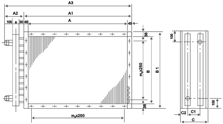 2.TL型高效換熱器換熱元件采用φ16x1.0mm或φ10x0.5mm紫銅管串0.15~0.2mm厚鋁片制成,有2.0~3.2mm多種片距,可滿足不同工況需要。