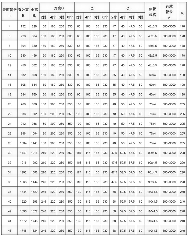 6.TL型高效換熱器參數表如下: