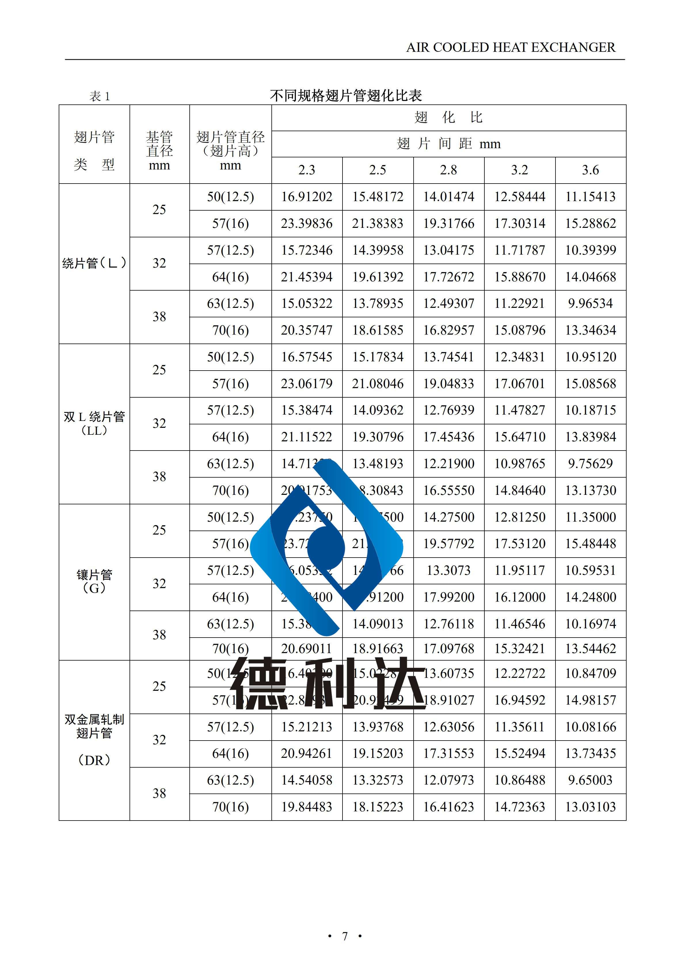 翅片管翅化比表